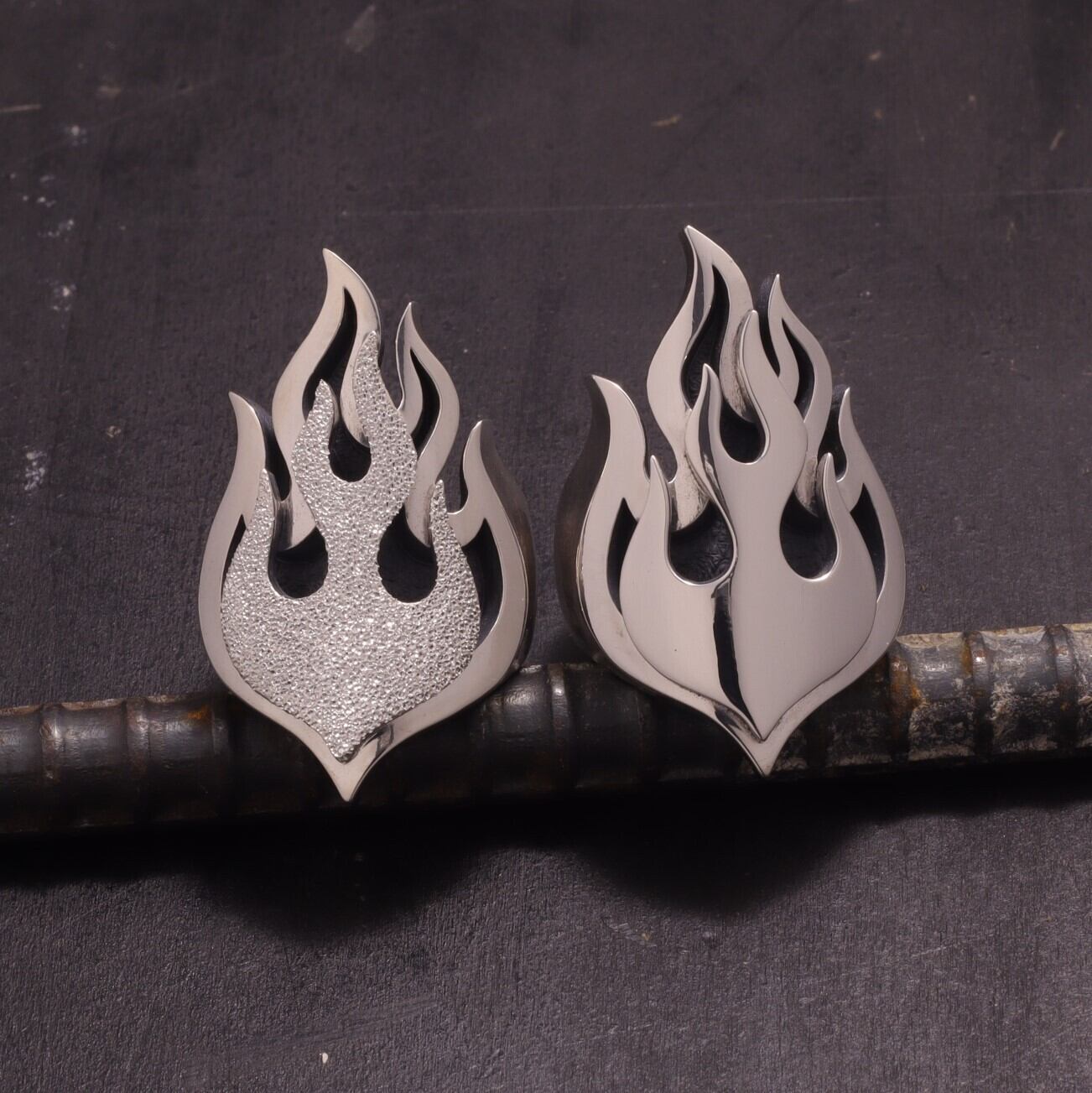 炎そのものではなく、ピンストライプで描かれたファイヤーパターンから着想を得たデザイン。